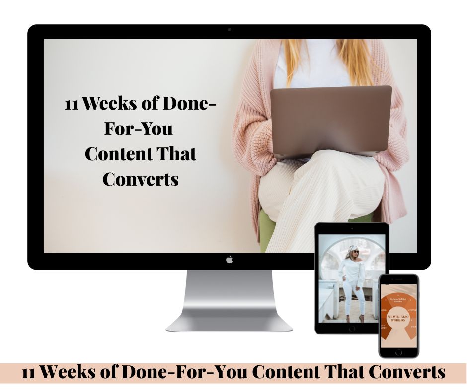 Are you tired of staring at a blank screen, wondering what to post? Burnt out from trying to create engaging content Every. Single. Day? What if you had 11 full weeks of strategic content almost DONE for you, based on what actually gets clients to buy?