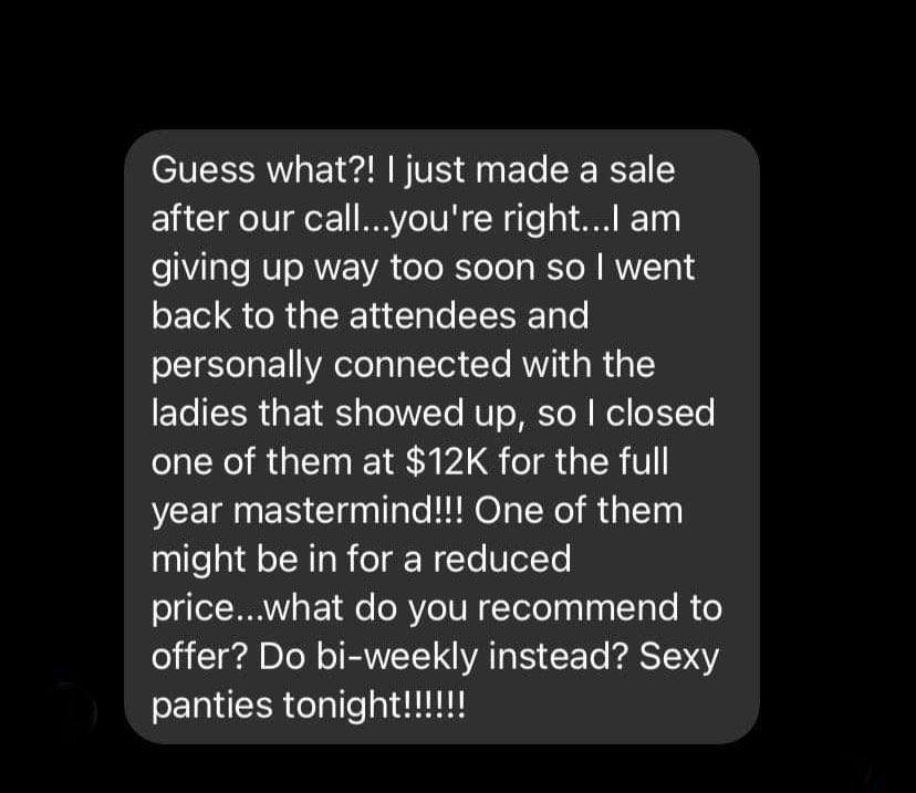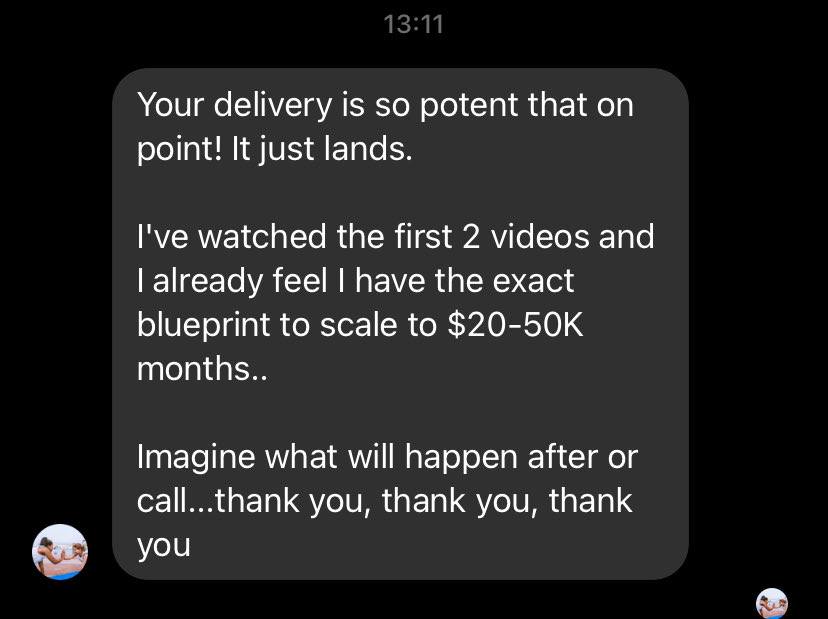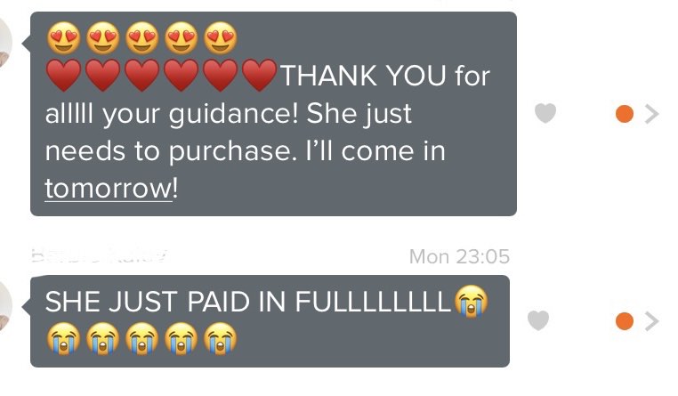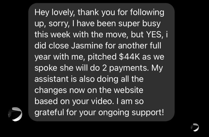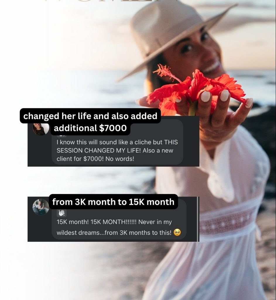 You are inspiration for me, such a powerful woman. You helped me increase my confidence and prices and communicate my value. This allowed the right people to come to me.