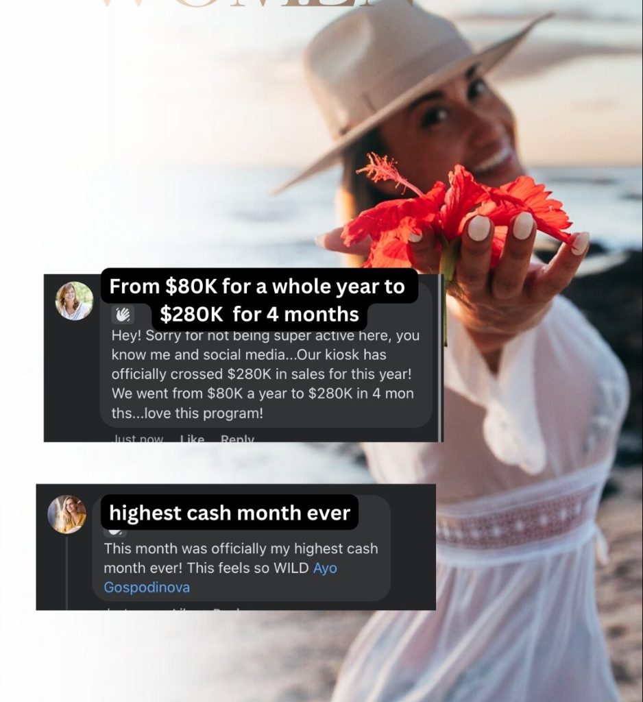 "You inspired me in a challenging moment of my life to become financially independent and to see how much more I can achieve. Now I feel so confident in what I offer and who I am. I have tripled my income and now I am ready to hit 6-figures in my business!"