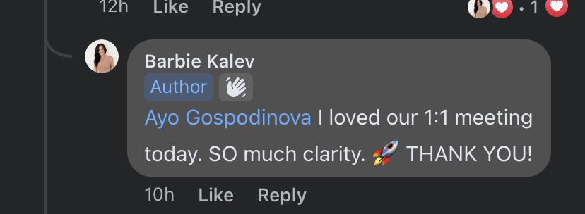 I've had the pleasure of working with Ayo for the last 3 weeks & totally enjoyed her clear, kind and encouraging way of listening & providing feedback, and suggestions and reflecting back with great questions. My main intention was to get clarity on a next-level growth step in my business where I couldn't see myself and the bigger vision yet. Result: I know exactly now who my next level audience is, how my offer suite and my marketing need to change and it has accompanied beautifully the personal uplevel I was going through the last weeks owning myself in a bigger way. Being very energy attuned I wanna highlight one element of Ayo that has supported my journey to absolute clarity. I have never worked with an HD reflector before and her energy held the mirror I needed beautifully next to her expertise in marketing and business. Thank you, Ayo This has been so helpful and fun 💚 Absolute recommendation to work with you.