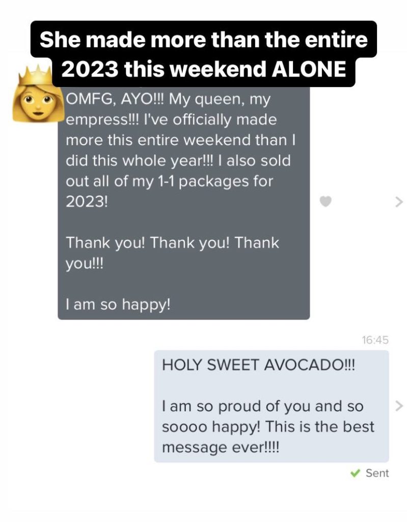 One of my agency clients, who is a very well-known course creator, has just hit $10M since starting her business. I have been with her since she was making less than $1000 per month.