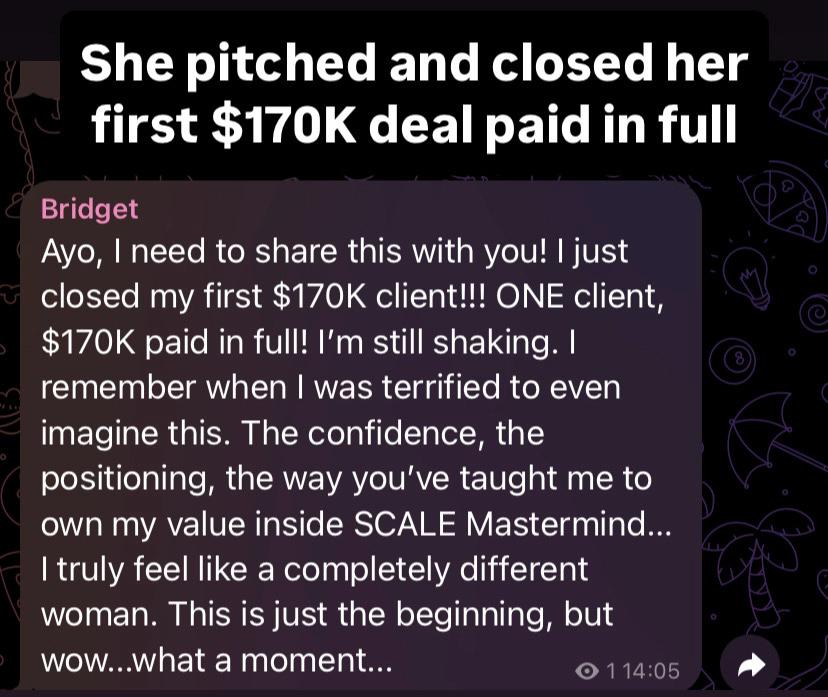 Imagine what becomes possible when you fully commit to your bold, audacious business goals. Imagine having Ayo by your side for a full year, guiding you to create the richest and impactful brand you can dream of. SCALE MASTERMIND is specifically designed to increase your profits significantly while eliminating the wasted time and energy spent on activities that fail to generate consistent cash flow. With Ayo’s guidance, your offers will receive a powerful facelift, designed to activate more people to become loyal, raving customers. You will execute a content strategy that converts, ensuring constant traffic, steady growth, and sustainable momentum.